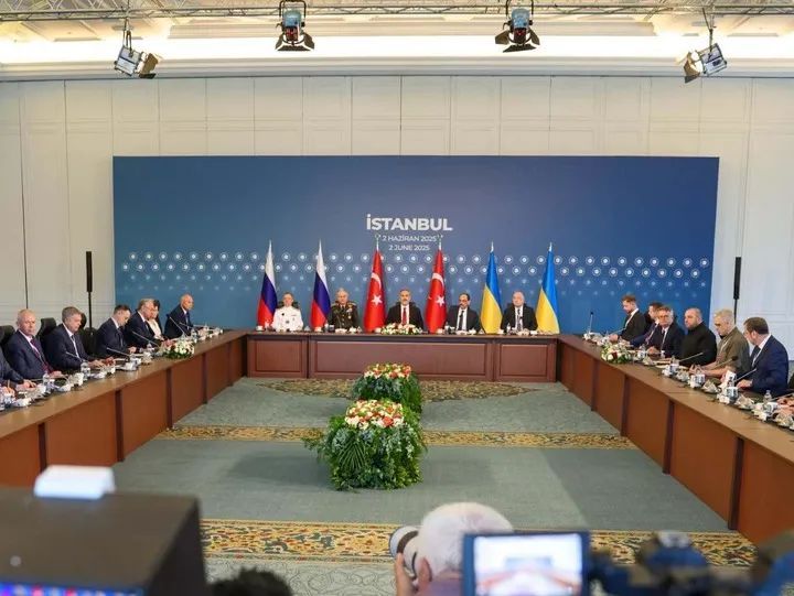 这是6月2日在土耳其伊斯坦布尔拍摄的俄乌第二轮直接谈判现场。新华社发(土耳其外交部供图)